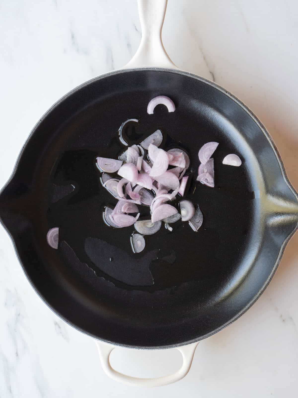 Step 2: Meanwhile, heat the olive oil in a medium skillet on medium heat until melted. Add the shallot and sauté for 3-4 minutes until fragrant.