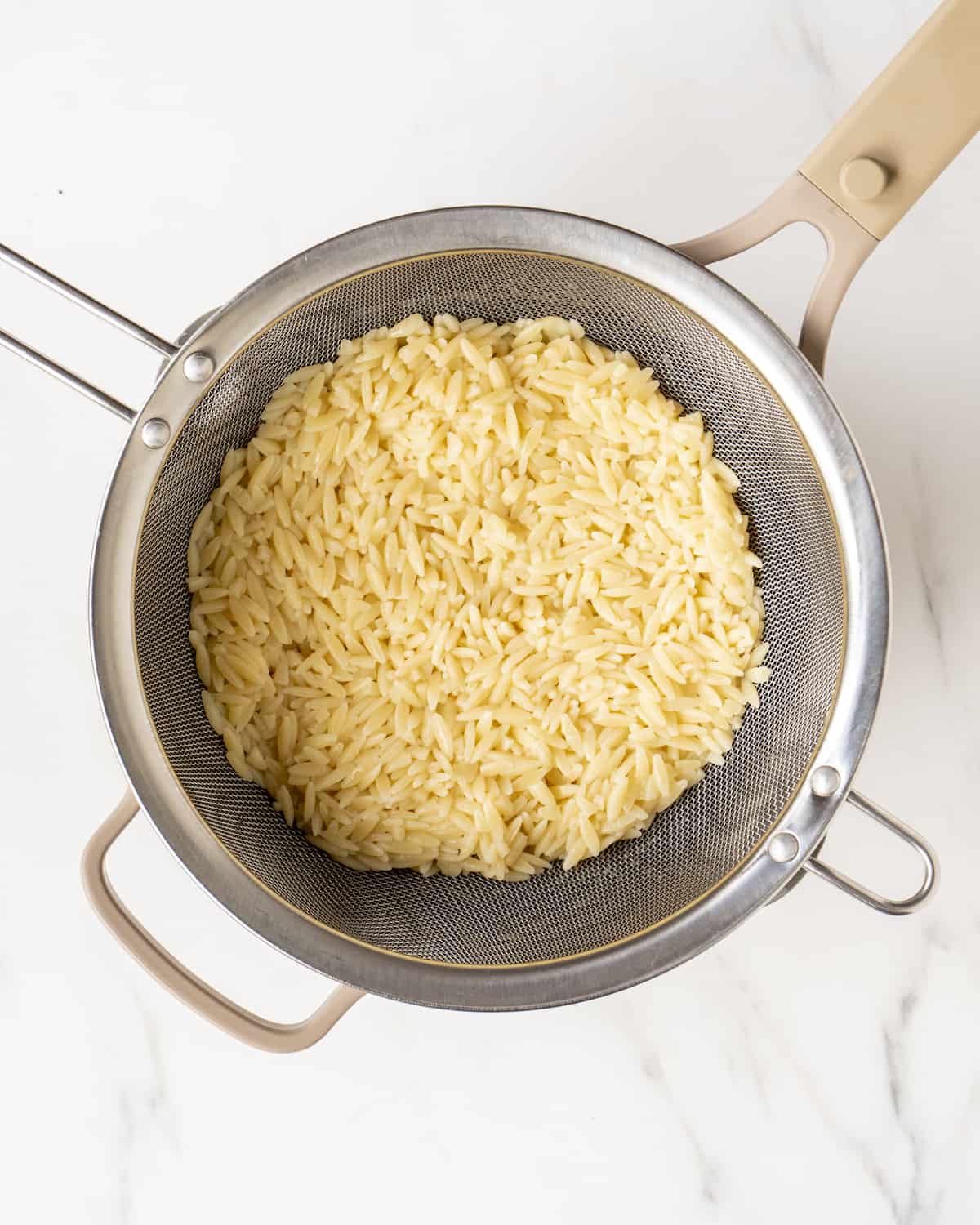 Step 1: Start by cooking the orzo until al dente.